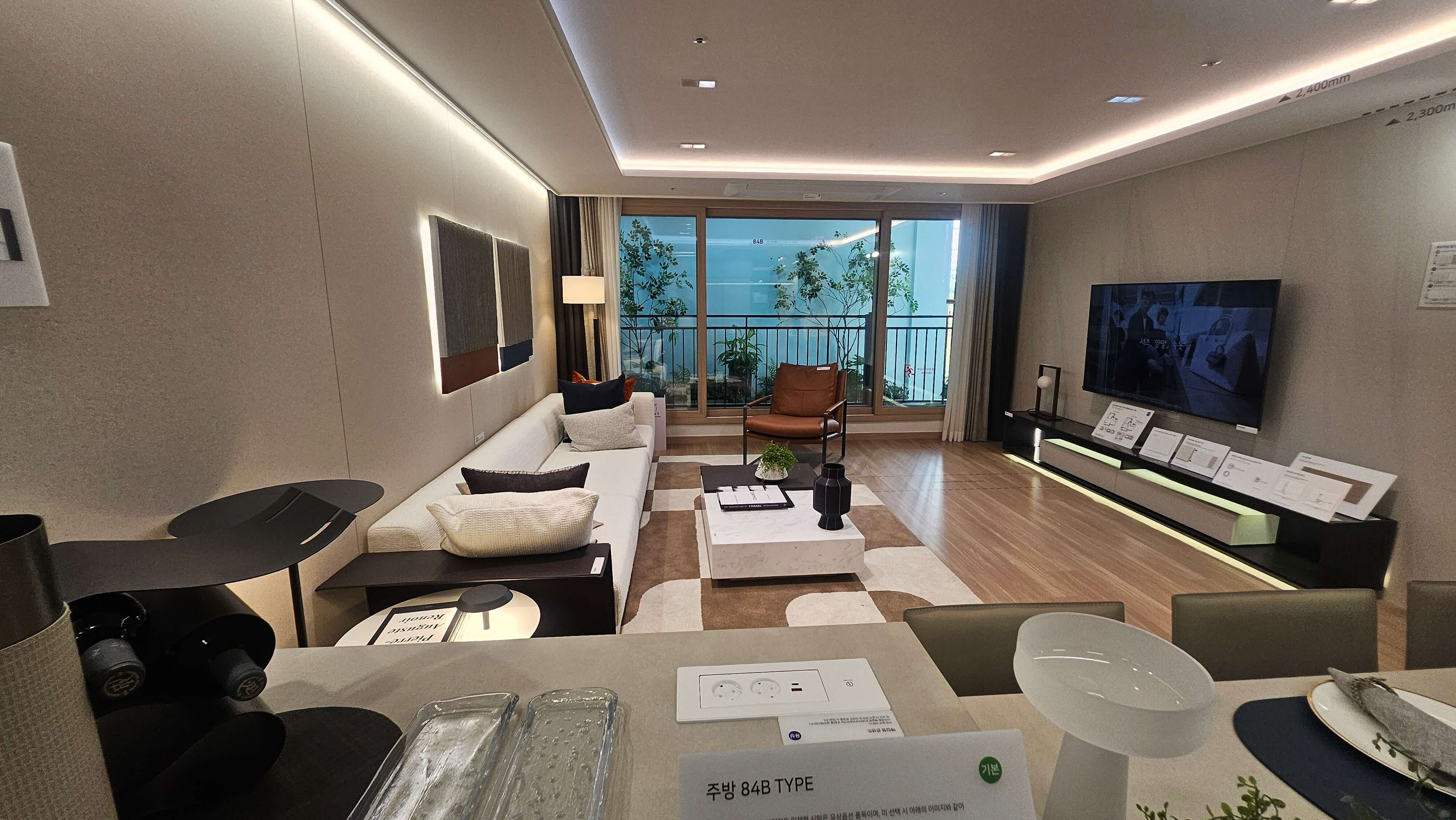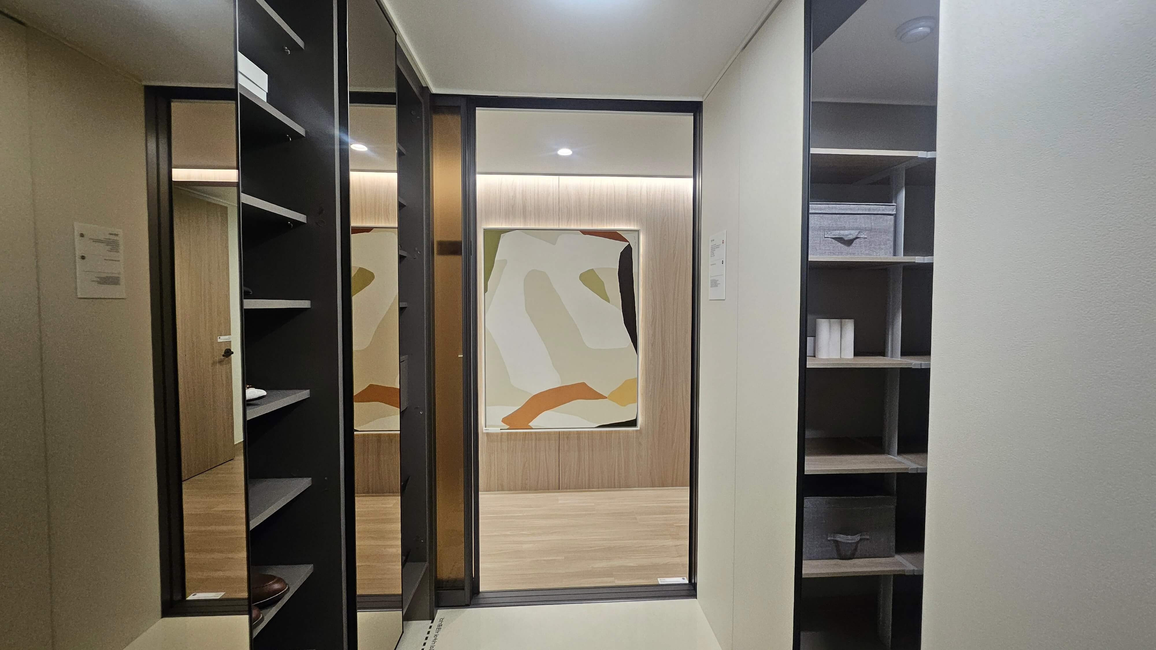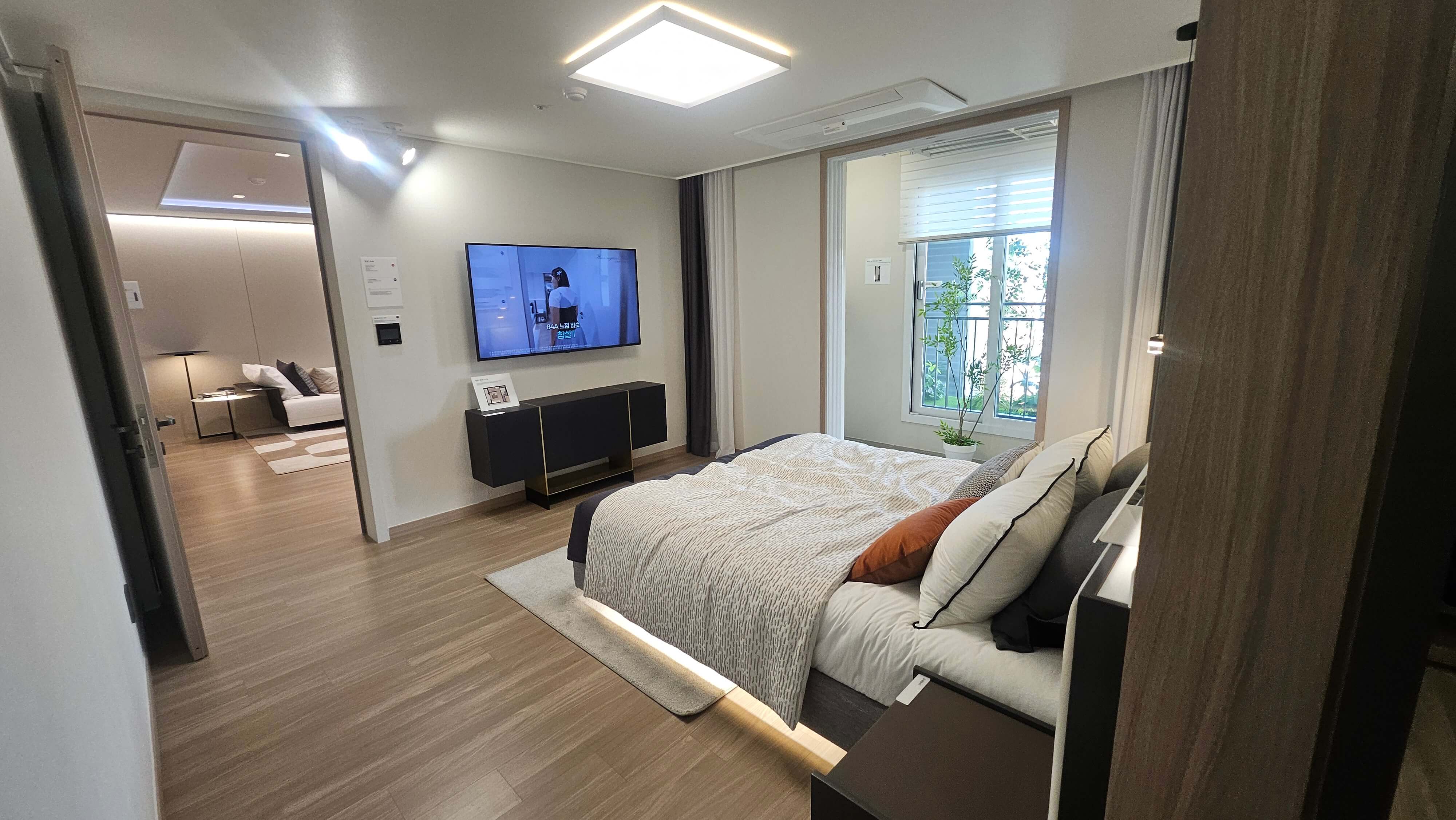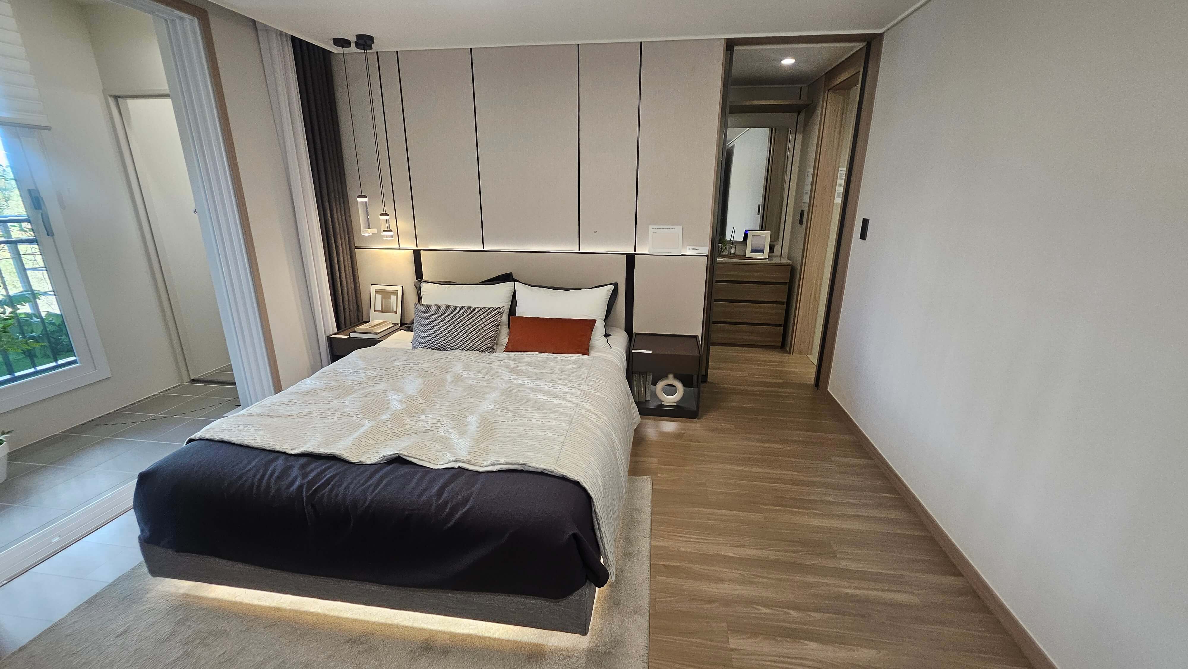 주거공간의 기본은 실용성입니다. 84A는 4베이 판상형 구조로 맞통풍에 유리하고, 거실과 주방 양쪽 창호를 통해 채광도 극대화했습니다. 안방에는 넓은 드레스룸과 파우더룸이 설치되어 여유로운 생활 동선을 제공합니다.