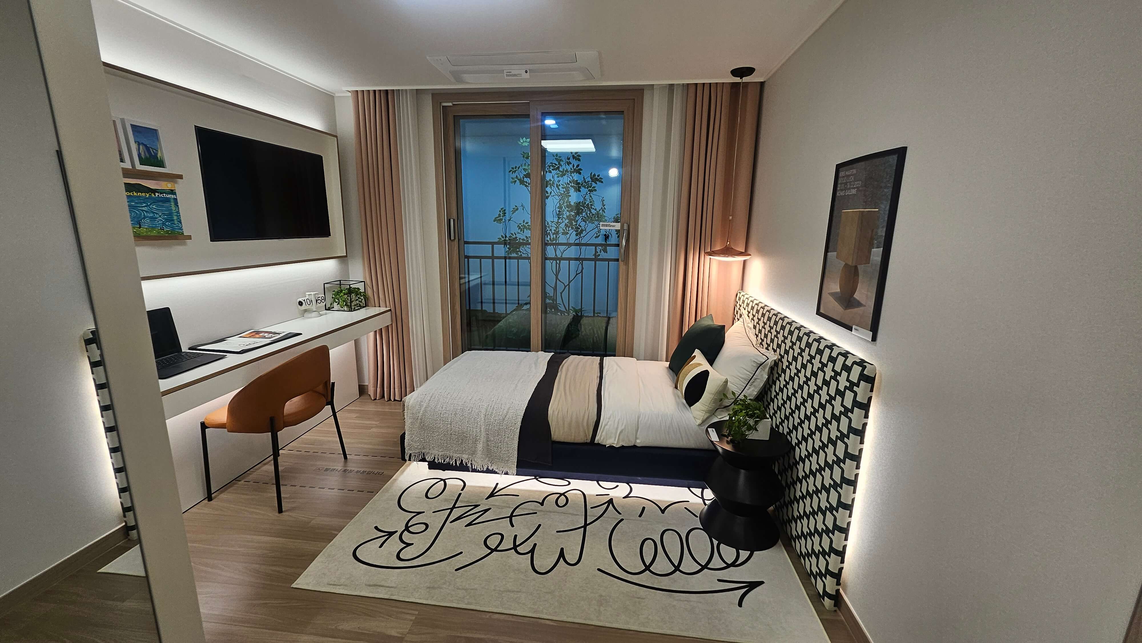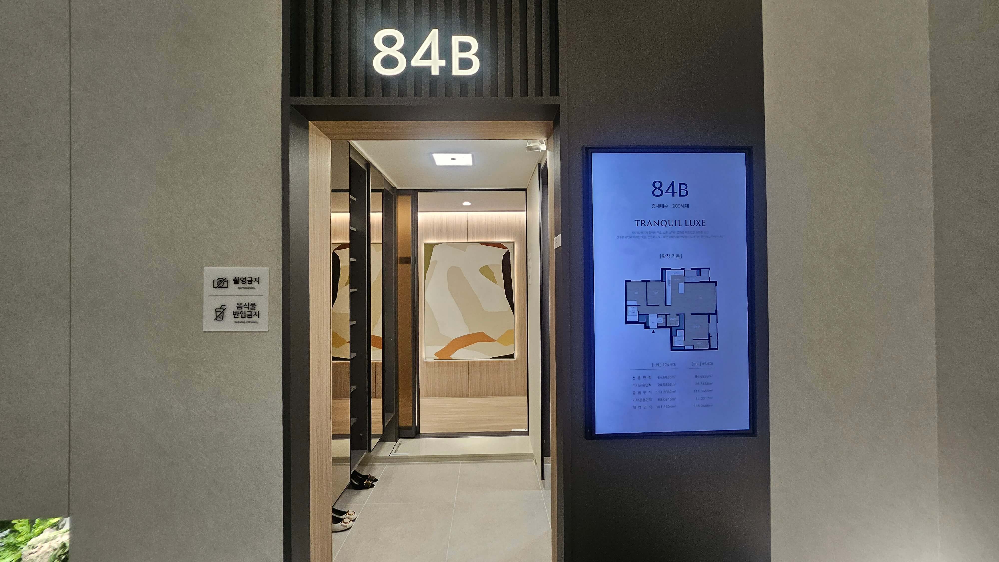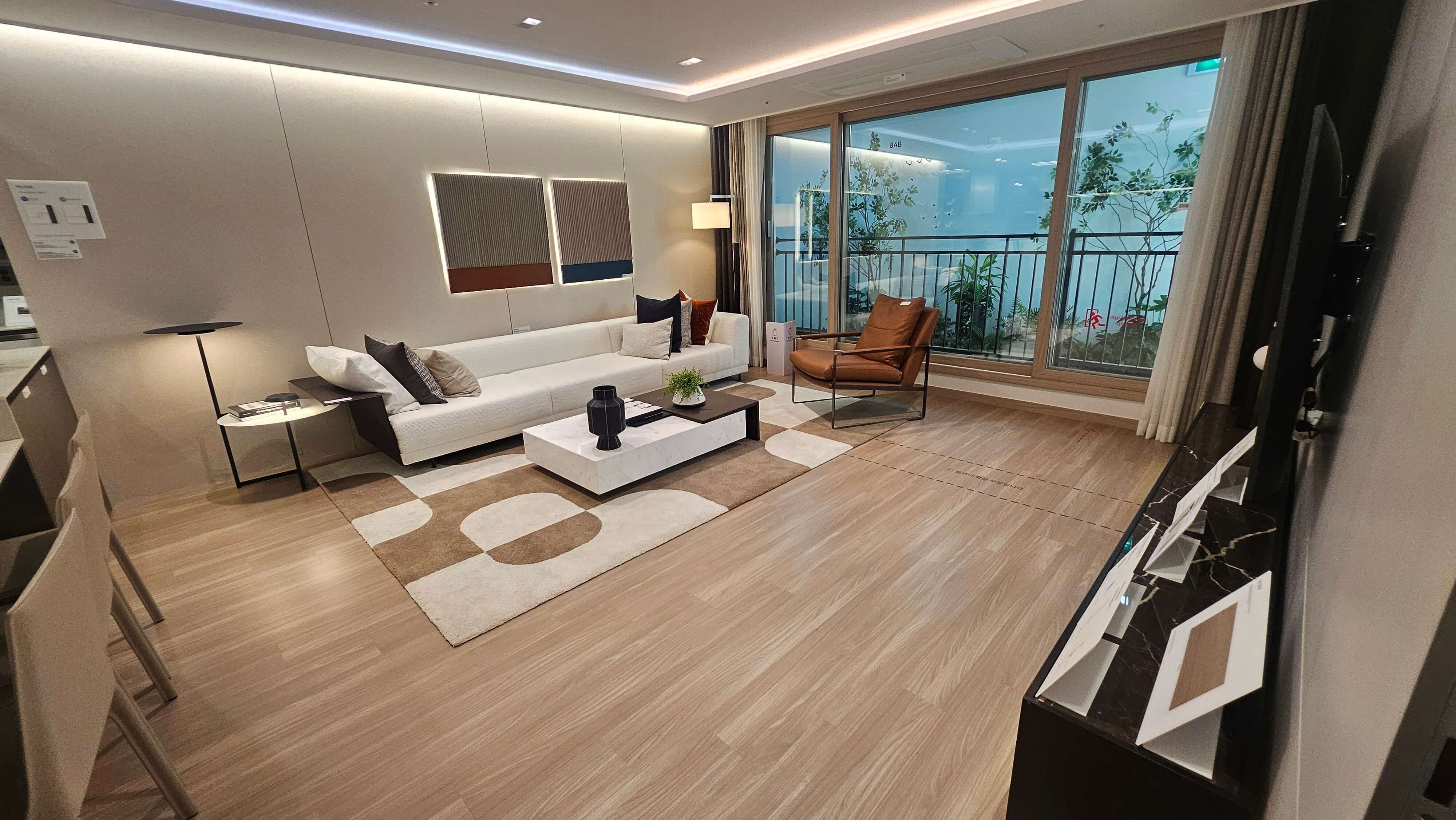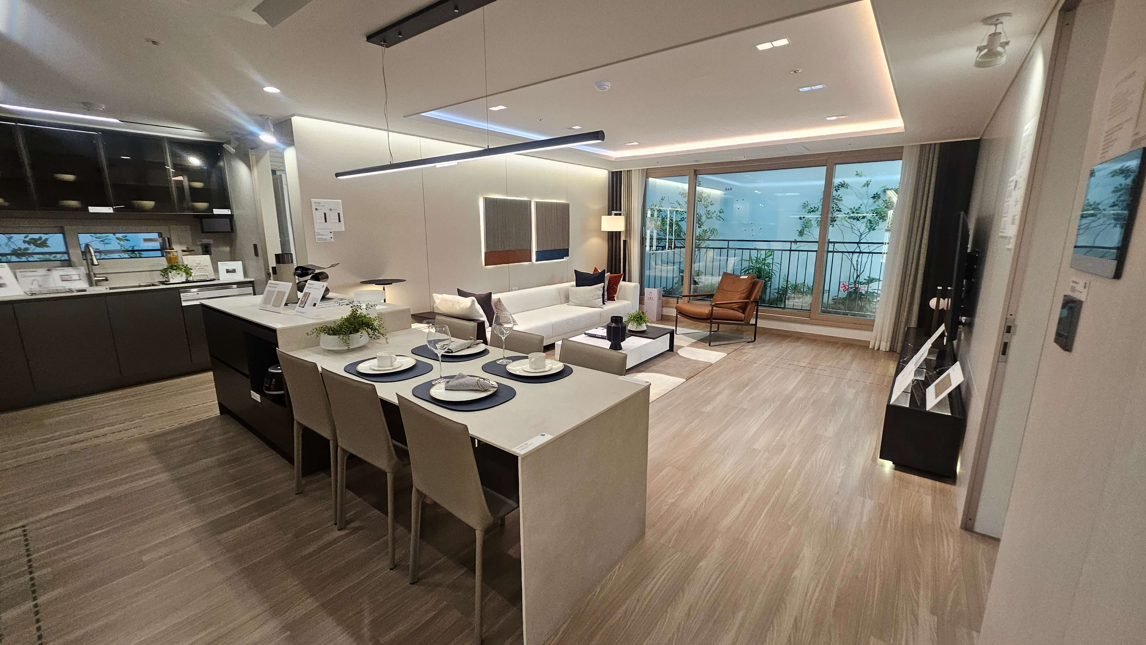 주거공간의 기본은 실용성입니다. 84A는 4베이 판상형 구조로 맞통풍에 유리하고, 거실과 주방 양쪽 창호를 통해 채광도 극대화했습니다. 안방에는 넓은 드레스룸과 파우더룸이 설치되어 여유로운 생활 동선을 제공합니다.