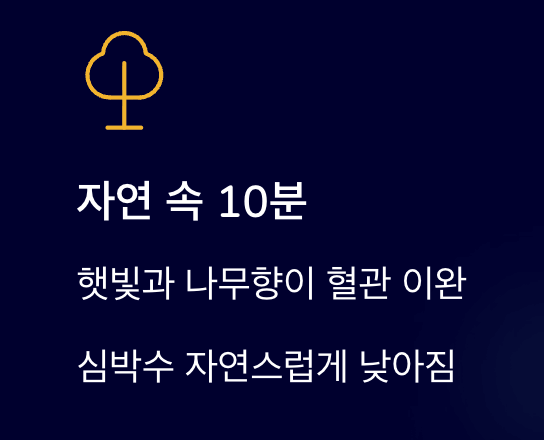 - 자연 속에서 10분 머물기 : 햇빛과 나무향은 혈관을 이완시키고 심박수를 낮춥니다.