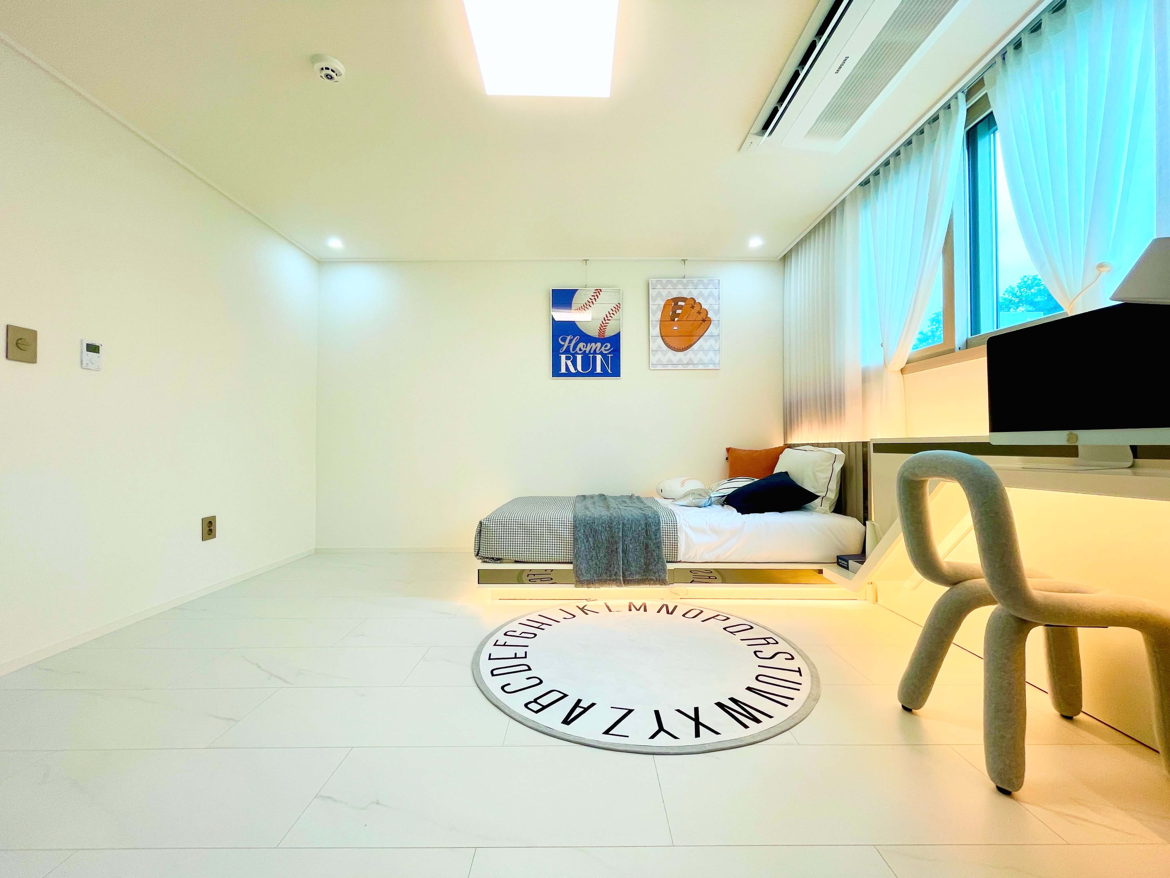 넓은 창문으로 들어오는 햇살과 화이트톤의 내부 디자인이 조화로운 공간입니다. 주방과 연결된 마당과 마당테라스는 자연과의 소통을 느낄 수 있는 공간입니다.