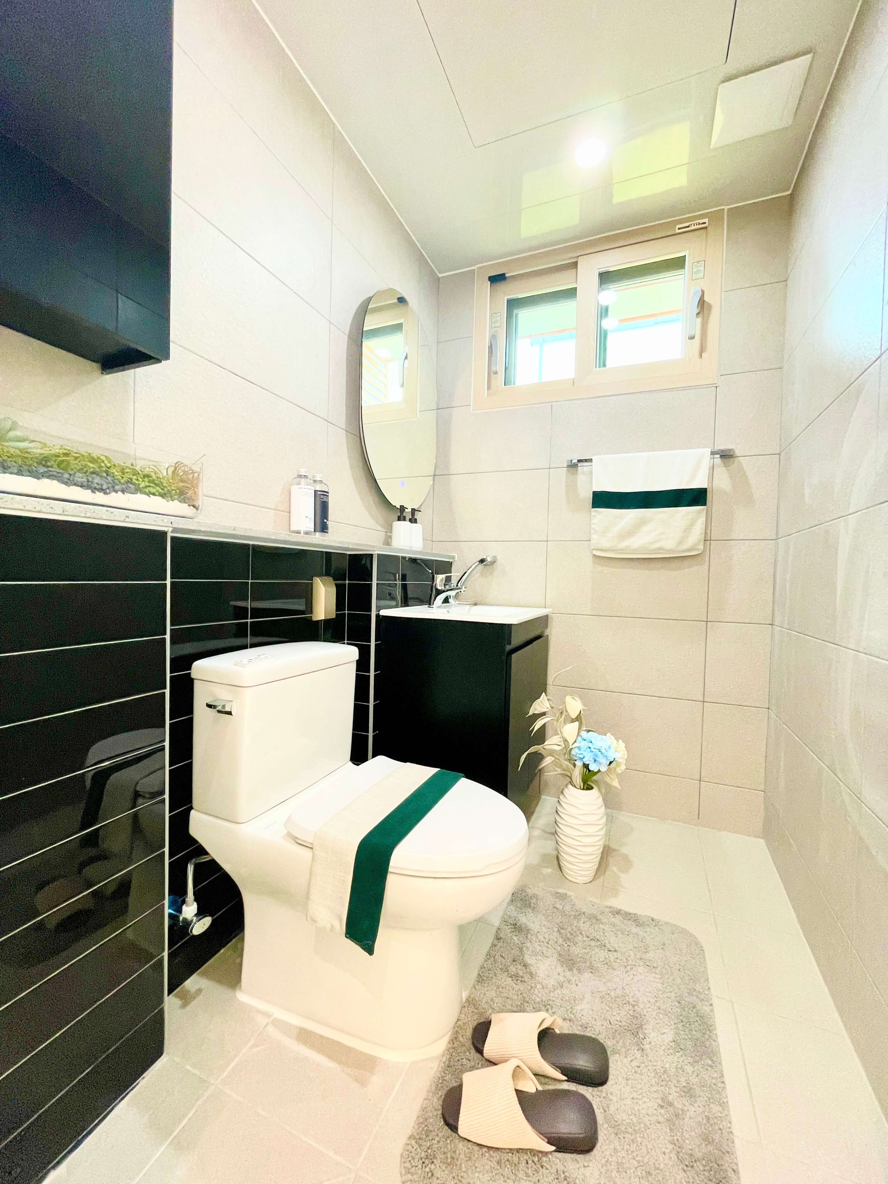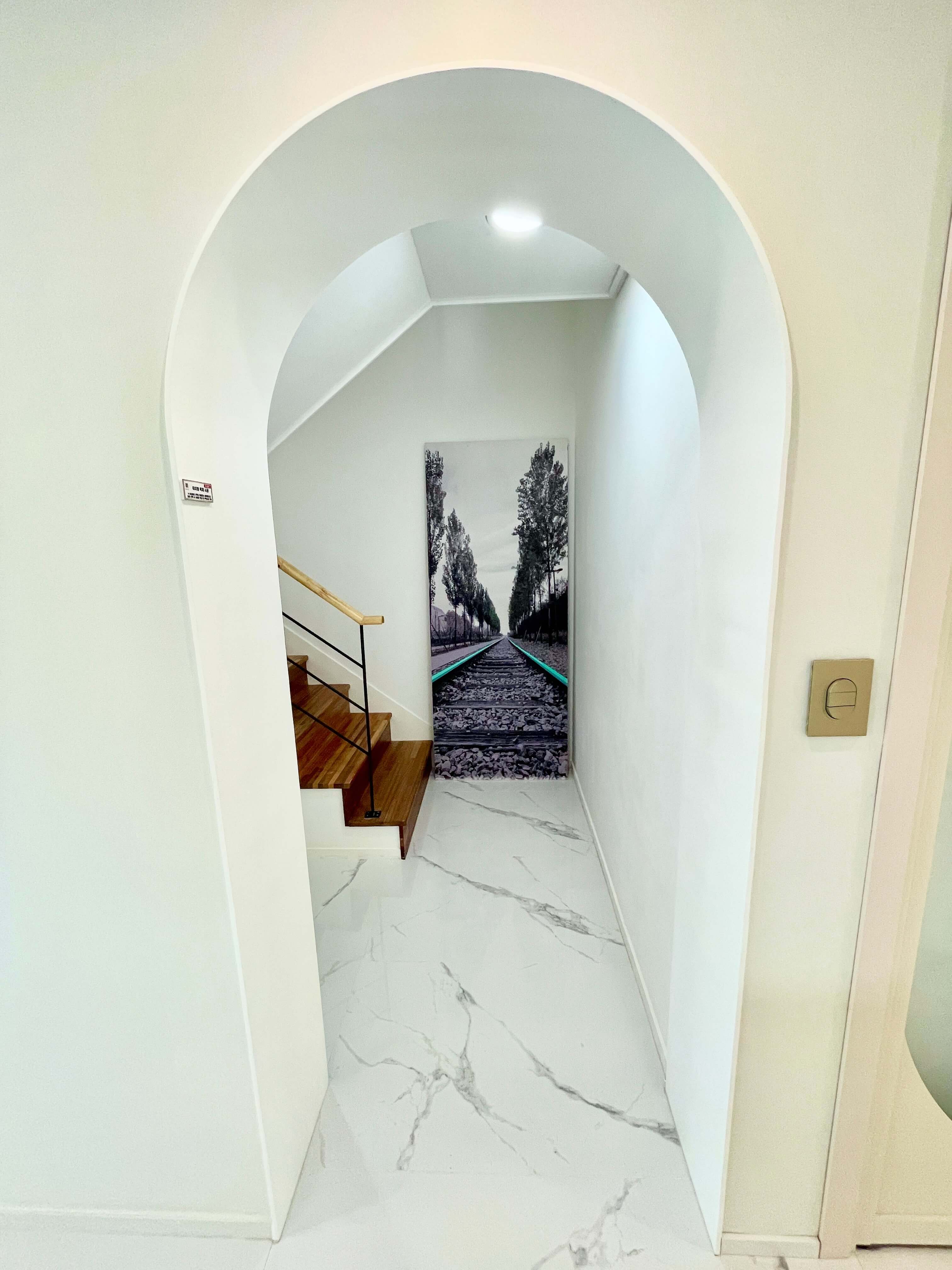 넓은 창문으로 들어오는 햇살과 화이트톤의 내부 디자인이 조화로운 공간입니다. 주방과 연결된 마당과 마당테라스는 자연과의 소통을 느낄 수 있는 공간입니다.