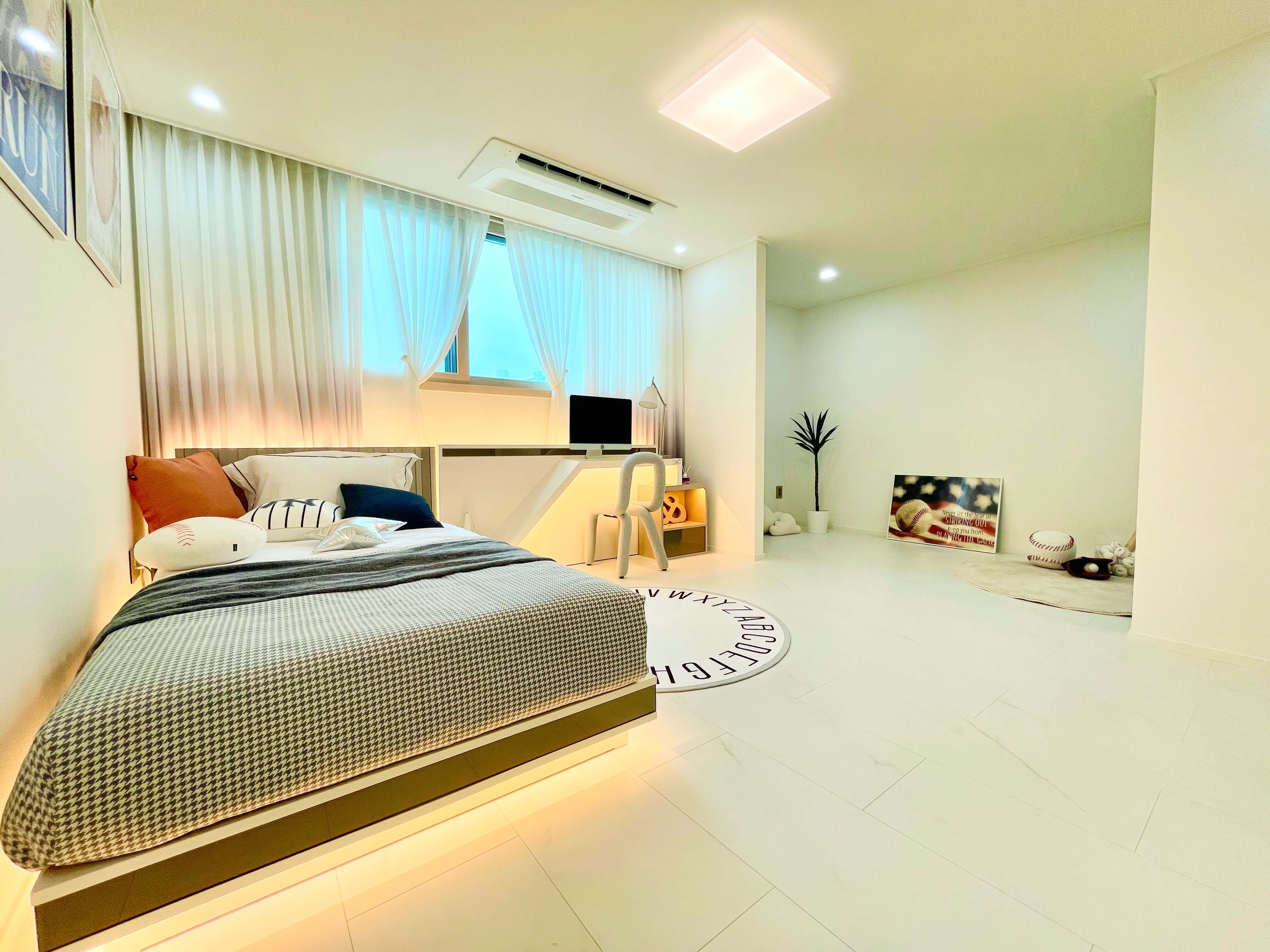 메인 안방인 방1에는 드레스룸과 테라스가 있어 아늑하면서도 개인 공간을 만들 수 있습니다.