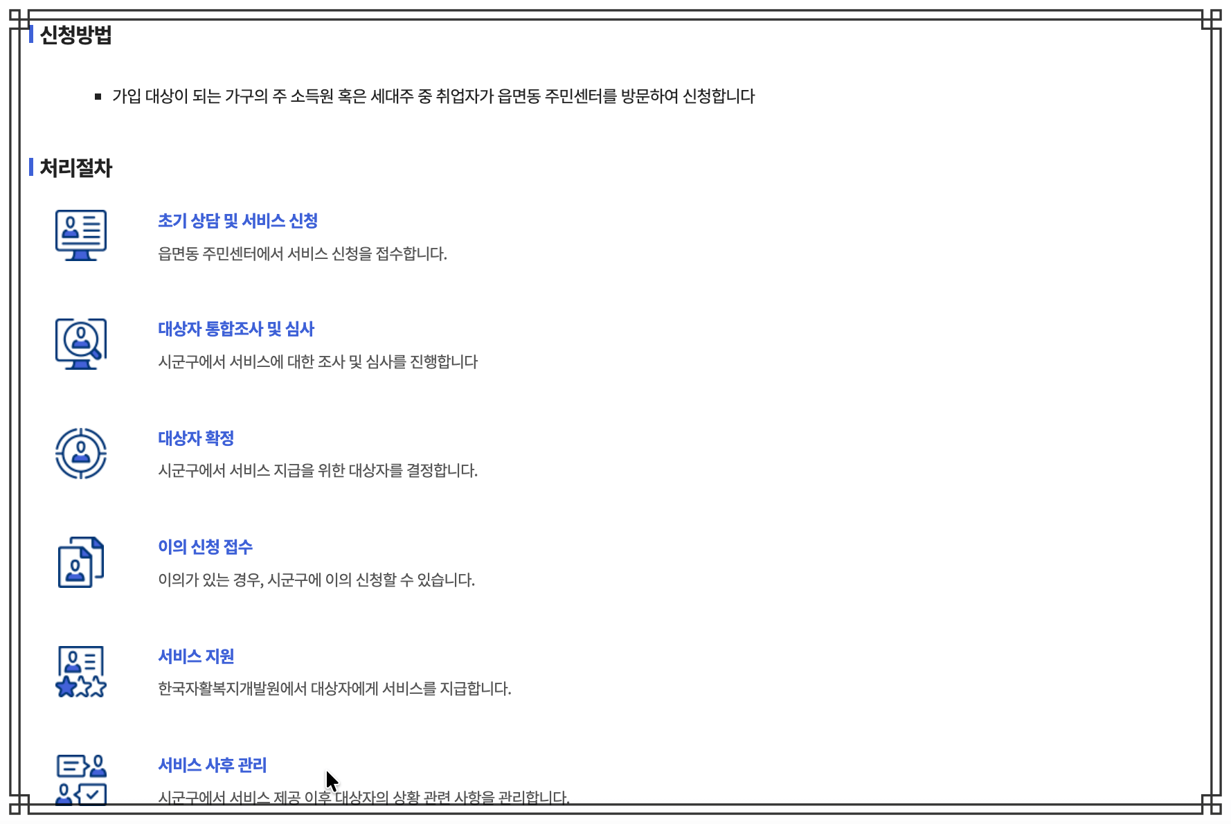 👉 온라인 신청이 불가능하며 반드시 거주지 주민센터에서 직접 신청해야 한다는 점입니다.