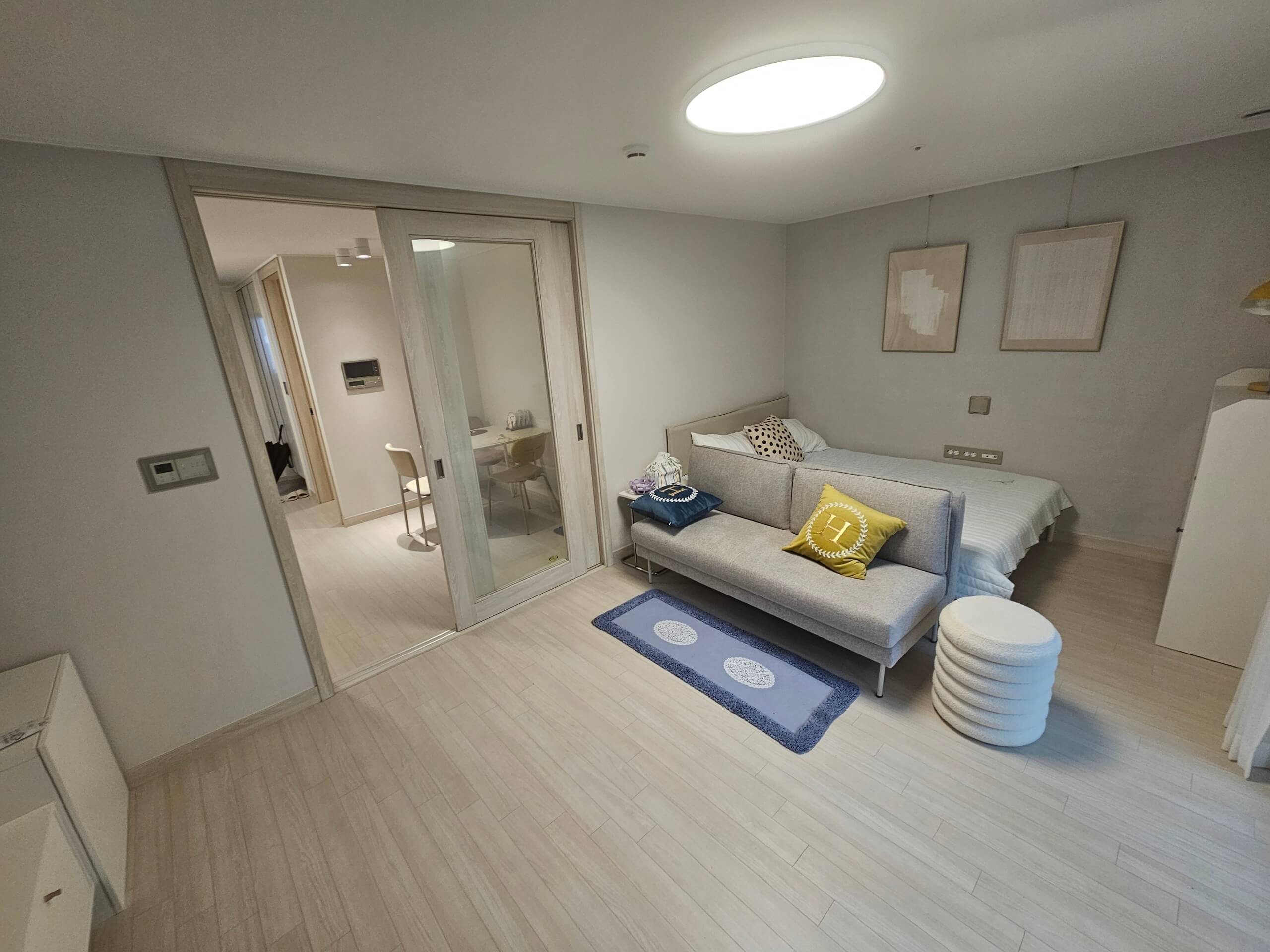 넓은 거실과 침실 외에도 방을 추가로 꾸려 아기방이나 홈오피스로 사용할 수 있으며, 작은 평형임에도 답답하지 않은 설계가 돋보입니다.