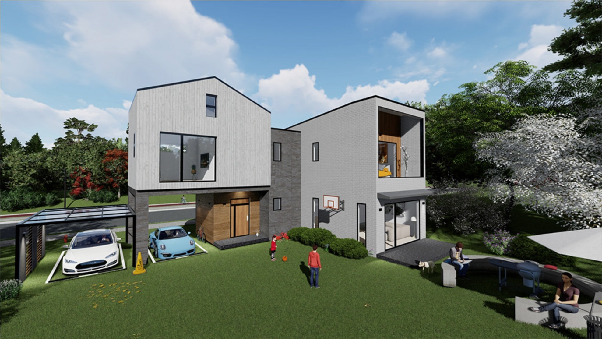 5m 층고로 더 밝고 넓어 보이는 가족실에서는 넓은 정원이 한 눈에 들어옵니다.