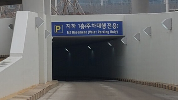 공식주차대행 접수장으로 이동: 단기주차장 지하1층 서편에 위치한 공식주차대행 접수장으로 이동합니다.