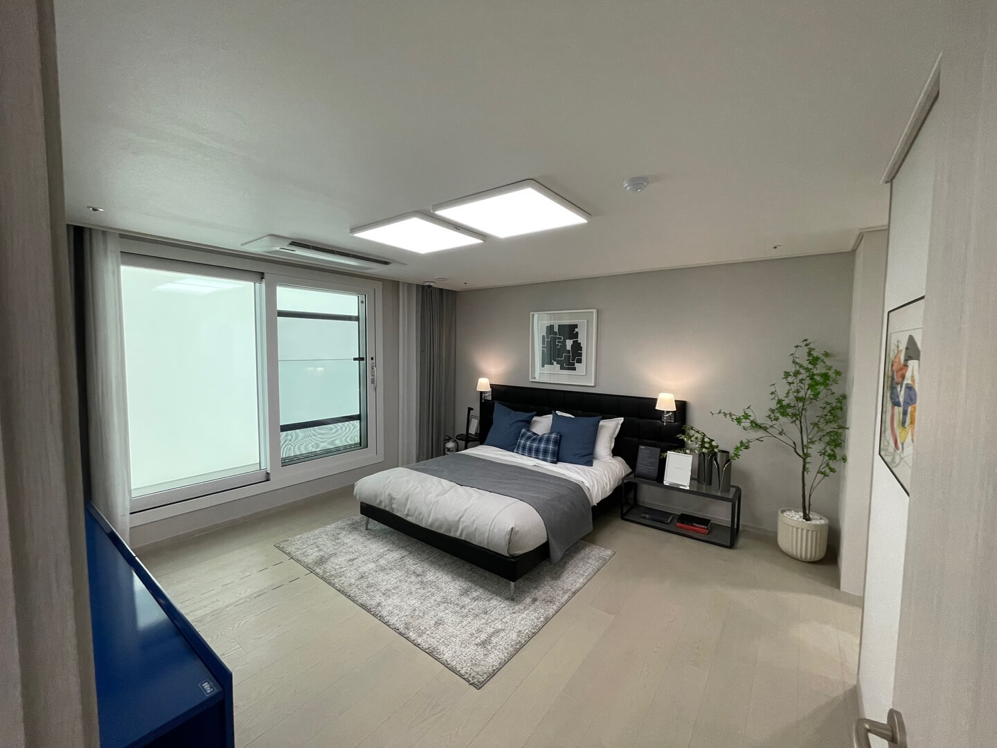 - 와이드 우물천장과 아트월로 고급스러운 분위기 연출