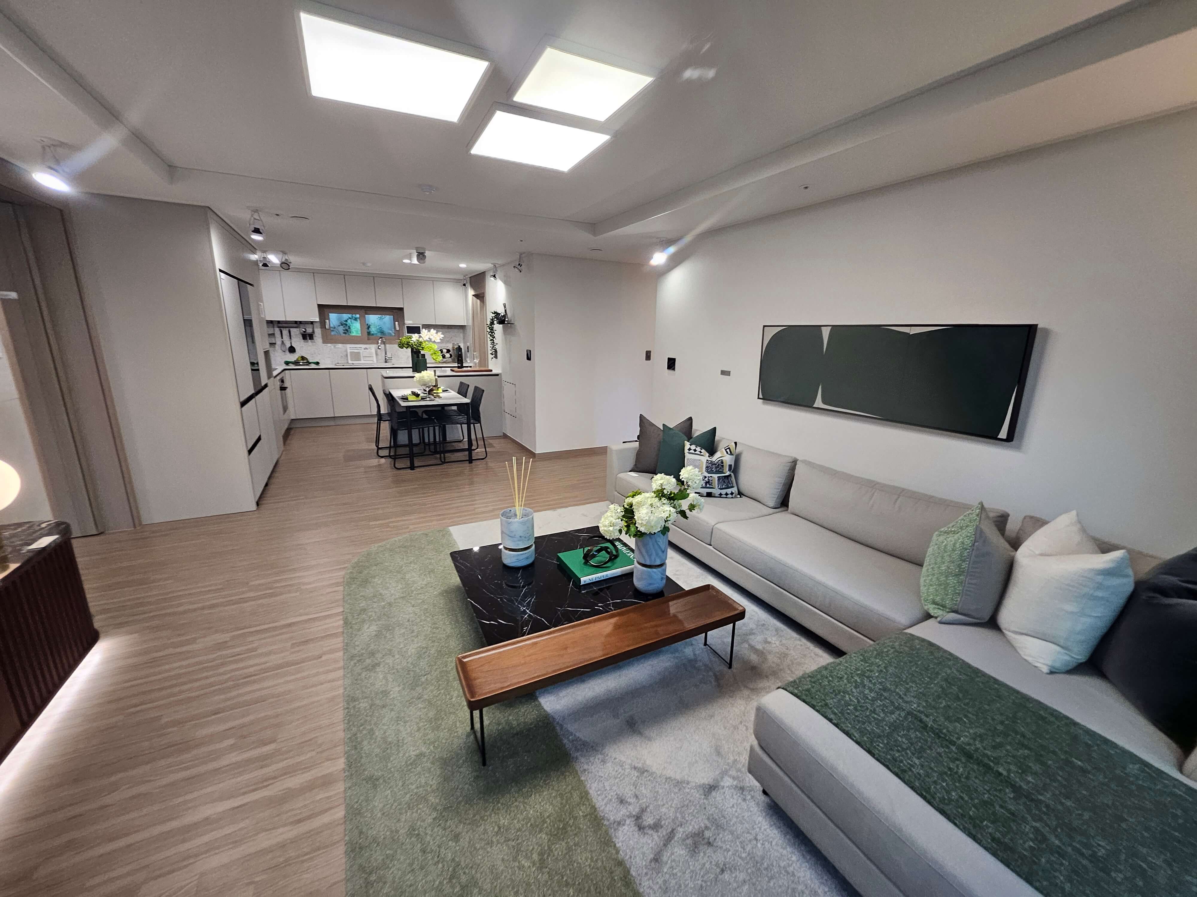 단지 내에는 피트니스센터, GX룸, 실내골프장, 작은도서관, 어린이집, 경로당 등이 조성되어 입주민들의 편리한 생활을 지원합니다. 또한, 가구 내부는 동선을 고려한 주방 가구 배치와 넉넉한 수납공간(타입별 상이)이 특징이며, 일부 가구에는 개방형 발코니가 적용되어 개방감과 쾌적성이 뛰어납니다. 최상층에는 특화 평면 설계가 적용된 펜트타입이 구성됩니다.
